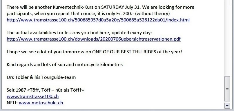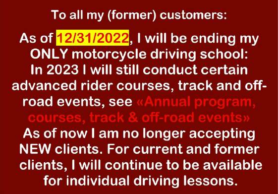 you find the brochure in English from my school: 1987-2017 30 years «motorcycle-school, only motorcycles!» |