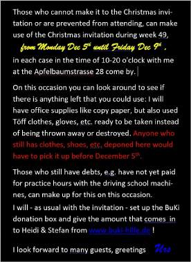 CANCELED: Weihnachtseinladung vom MI/DO, 8.+9.Dez. |