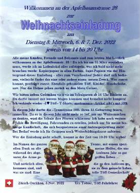 Über den Pfeil oben rechts «Weiter» zur «WEIHNACHTSEINLADUNG 2022» |