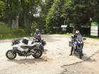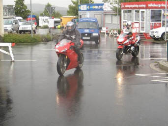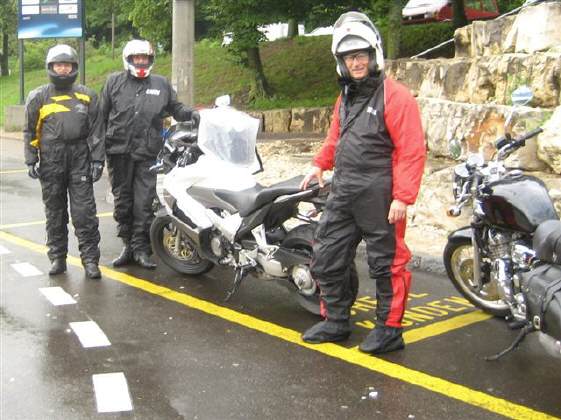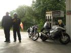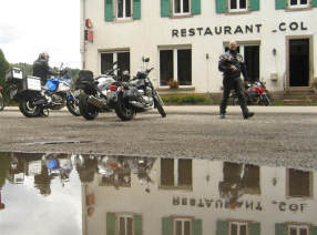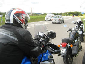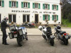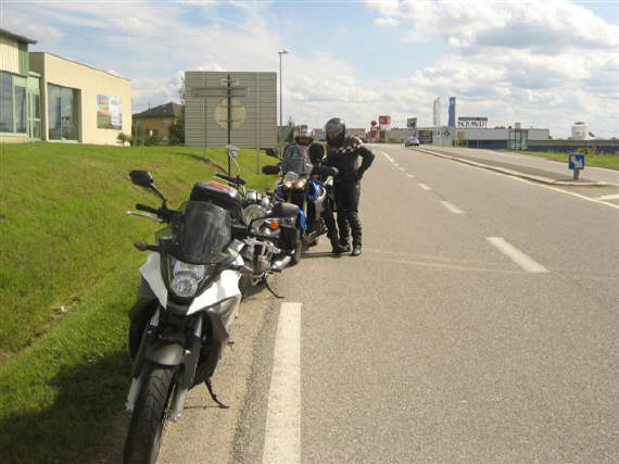 Wir starteten wie geplant in der Raststätte Würenlos um 8 Uhr und fuhren am Samstag durch die Vogesen bis nach Saarlouis: Erst Nieselregen, dann feuchte Strassen, dann ersten Sonnenschein - unsere Fahrt durch die Vogesen war zwar kühl, aber freundlich, mit trockenen Strassen bis auf die letzten 30 Kilometer! Bilder unten: Noch vor dem Regen programmiert Walter sein GPS, um ohne Autobahnen zum Hotel zu kommen! Es waren keine Autobahnen, aber Schnellstrassen, über welche wir schliesslich unser Ziel fanden - und WIE hat es dann doch noch geregnet! |