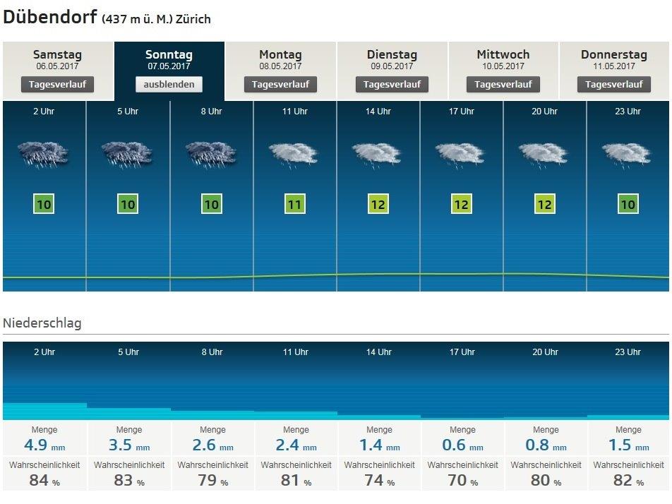 Prognose Radio DRS Meteo Schweiz für Dübendorf |