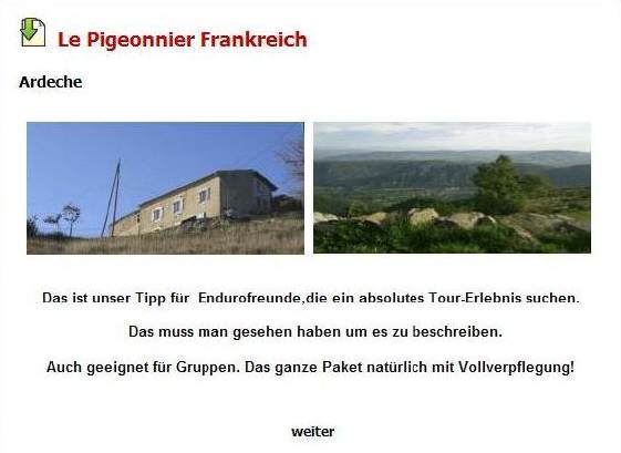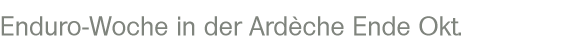 Im Herbst steht dann wieder die Enduro-Woche in der Ardèche auf dem Programm: Touristisches Endurowandern. Wer sich dafür interessiert, soll sich ebenfalls mit mir in Verbindung setzen. Es müssten mindestens 6 (bis max. 8) Teilnehmer/Instruktor sein, damit ich meine Schule für eine Woche im Stich lassen kann. Gefahren wird mit Enduros, leichte Einzylinderstrassenmaschinen mit grober Bereifung gehen auch noch – allenfalls können Geländemaschinen von Dany Wirz gemietet werden.