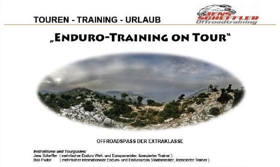 Jeweils abends, in der gemeinsamen Runde, wird das Tagesprogramm für den nächsten Tag besprochen. So kann sich jeder über Nacht überlegen, wo er/sie mitfahren will. Es besteht auch die Möglichkeit, von der Strasse ins Gelände zu switchen und umgekehrt: Wer z.B. auf der Strassenmaschine anreist und seine Enduro jemandem auf dem Anhänger mitgibt, kann nach einer harten Gelände-Etappe auch mal einen Tag ausspannen und mit der Strassenmannschaft losziehen. Ist eine Geländemaschine frei, kann sich in Absprache auch mal ein Strassenfahrer ins Gelände wagen - dabei wird garantiert Rücksicht genommen. Highlight ist für alle ein gemeinsamer Grottenbesuch in der schönsten Grotte in dieser Gegend: Ein Muss auch für all jene, die sonst nicht so «kultur-befliessen» sind, ein Ausflug garantiert ohne Reue! |