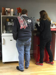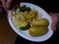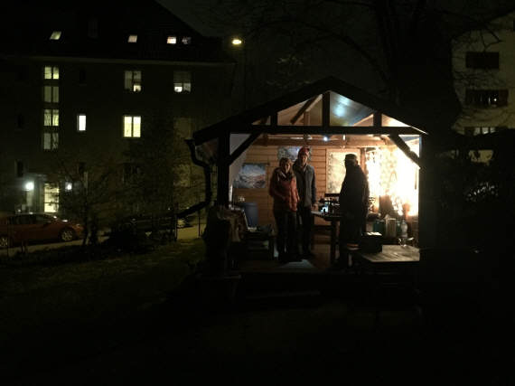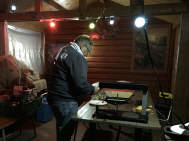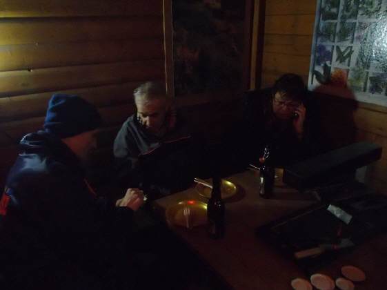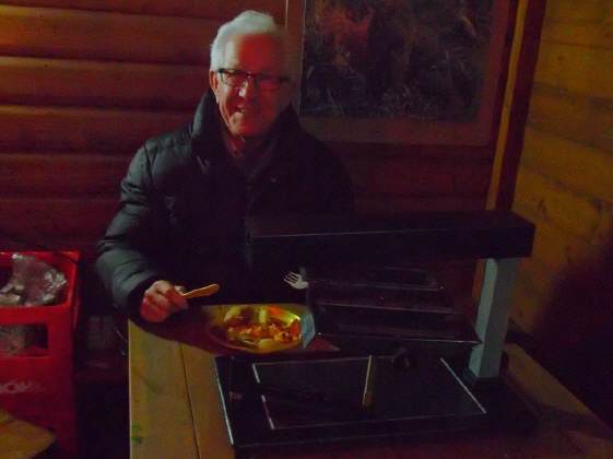 Am zweiten Abend dauerten die Vorbereitungen nicht mehr so lange. Etwas weniges dazu einkaufen, dann alle Abfälle wegräumen und wieder alles in Häuschen tragen. Karin kochte wieder die Erdäpfel, Urs stieg wieder in die Hosen, auch am zweiten Abend alle hungrigen Mäuler zu stopfen. Da es an diesem Abend viel mehr Gäste gab, ein ganz hungriger aus dem St. Gallischen (!), wurde er richtig herausgefordert. Elvira hatte sich offenbar am Abend vorher erkältet und auch Renato war froh, dass es an diesem Abend ohne ihn ging. "Liebe ist, wenn beide husten!" Der Abend verging wie im Flug und kurz vor dem Zusammenräumen, traf auch noch Sebastiano ein: Für ihn und auch ein paar andere hiess es dann zusammenräumen. Vielen Dank, dank vieler zupackender Hände waren wir vor 21 Uhr fertig mit der ganzen Aktion.