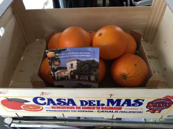 Als «Geschenk» darf jeder Besucher, jede Besucher eine Orange mitnehmen von «Casa del Mas», biologisch angebaut und direkt in reifem Zustand aus dem Anbaugebiet in Spanien nach Küsnacht geliefert, um möglichst schnell verspiesen zu werden. Link zur Homepage von «Casa del Mas» |