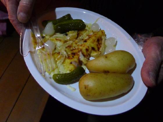 Raclette à discretion serviert von Urs im Blockhaus im Schulgarten vis-à-vis!