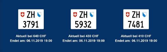 Fahrzeugschild ersteigern (Bsp. Kanton ZH) AKTUELL: Versteigerung vom 5.Dez. 2018 |