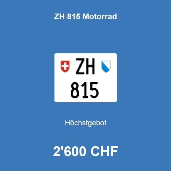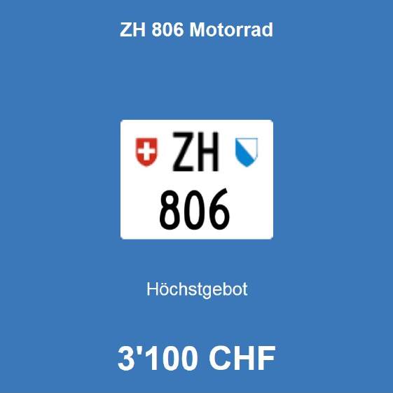 Das Schild «ZH 787» vom 22.7.2020 ging für Fr. 6100.- weg, dem höchsten je für ein Motorrad-Schild gebotenen Betrag! Mehr dazu hier
