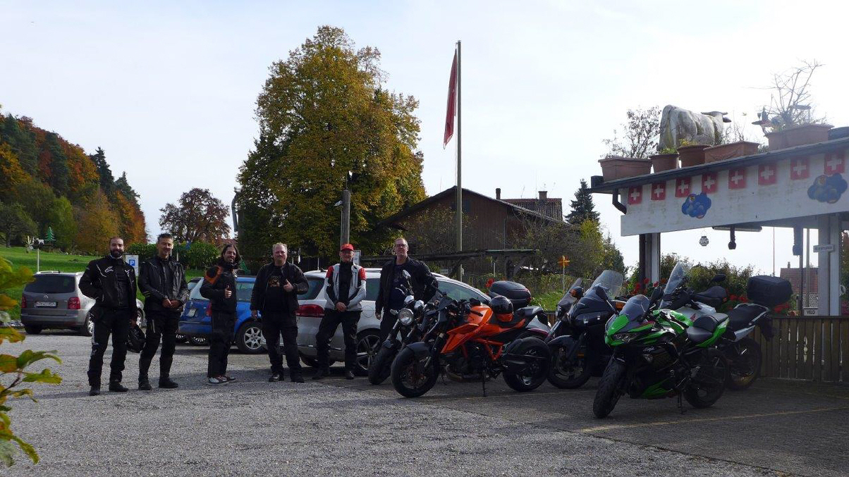 Da ich im Chat der «Sunset Riders» bin, erhalte ich regelmässig die Mitteilungen. Aufgrund der Wetterverhältnisse am Sonntag, 15.Oktober wurde die Ausfahrt um 2 Wochen verschoben. Die Verschiebung war ein Glücksfall: Der Föhn sorgte dann für einen unglaublich schönen Herbsttag mit 22 Grad in Altdorf!  |