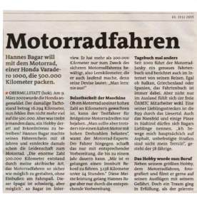 Lokal-Zeitungsartikel zum bevorstehenden 500000.Km |
