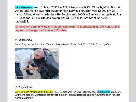 Honda Austria hat ihm 2016 eine neue Honda Africa Twin mit DCT zur Verfügung gestellt, damit er möglichst schnell Erfahrungen zusammentragen kann. Zu der Zeit, als ich mit ihm erstmals Kontakt hatte, war er bereits über 400'000 Kilometer gefahren – ohne technische Probleme! Er versucht, bewusst das DCT manuell zum Bremsen auszunützen, was bisher keine technischen Probleme verursacht hat, wie in seiner Zusammenstellung aufgezeichnet: