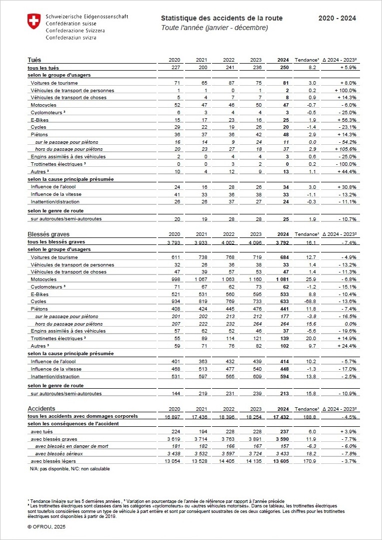2025-03-13 OFROU Accidents de route 2024 avec commentaires à télécharger en PDF [91 KB]