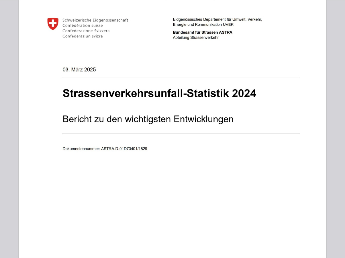 Der Bericht vom 03.03.2025 zu den Strassenverkehrsunfällen 2024 als PDF [1'132 KB]
