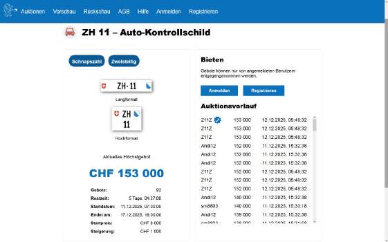 Fahrzeugschild ersteigern (Bsp. Kanton ZH) AKTUELL: Versteigerung vom 10.Dez. 2025 |
