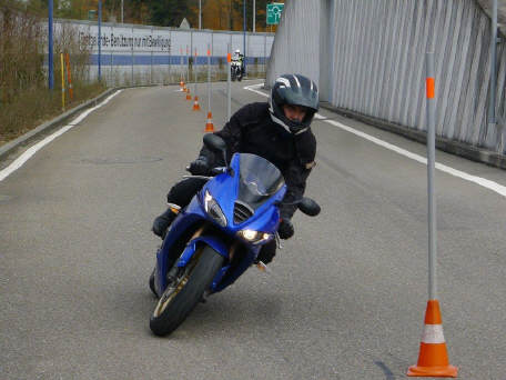 Auf dem Areal eingetroffen, ging’s dann erst wieder fahrschulmässig los mit Langsamfahren, Slalomfahren, usw. Auch Kupplungsübungen waren gefragt, mit Rollbrettern in der prüfungsmässigen Steigung! Nachher ging’s dann endlich los mit dem Kurvenfahren, wobei bei einigen das Limit der Maschine schnell erreicht war. Nach der Mittagspause im alterwürdigen Restaurant Freimann hiess es wieder Kurven, Kurven, Kurven ... Später am Nachmittag ging's hinaus in den Realverkehr am Zugerberg, genial!