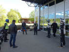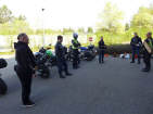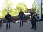 Genau um 9 Uhr wechselten wir auf das Gelände des Strassenverkehrsamtes. Da es ein Signat hat «Einfahrt verboten» (für all jene, die keine Bewilligung haben), müssen wir die Motorräder etwa 20 Meter weit schieben - eine gute Übung frühmorgens, der härteste Job habe ich mit dem Einradanhänger ...