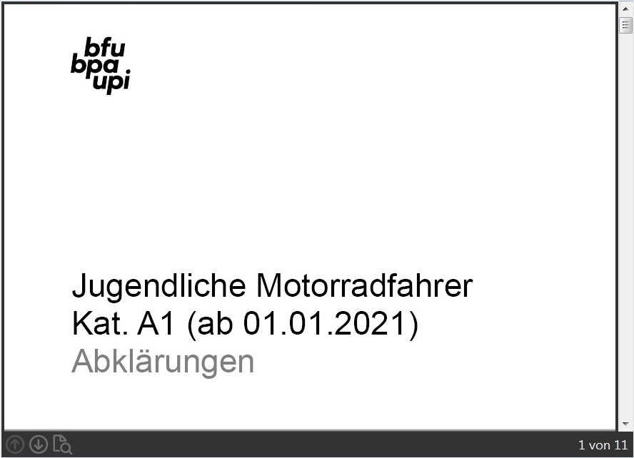 Der Evaluations-Bericht (Original) (25 Seiten) vom 13.03.2025 zu den Unfallzahlen 2021-2023 der neuen Kategorie A1 für 15- bis 17-Jährige als PDF [527 KB]