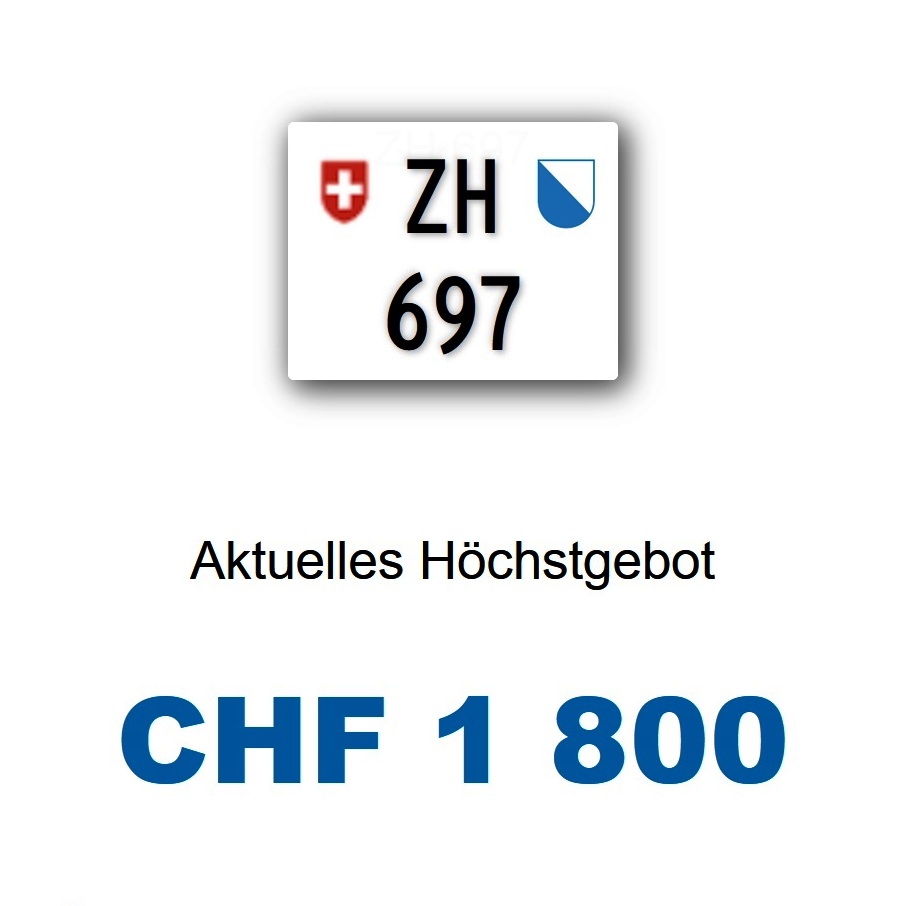 Am 21.01.2026 wurde im Kanton Zürich das nächste 3-stellige TÖFF-Nummernschild ausgegeben - in der Auktion ging es zum recht günstigen Preis von nur Fr. 1800.- weg! Verfolge den Verlauf vom «ZH 697