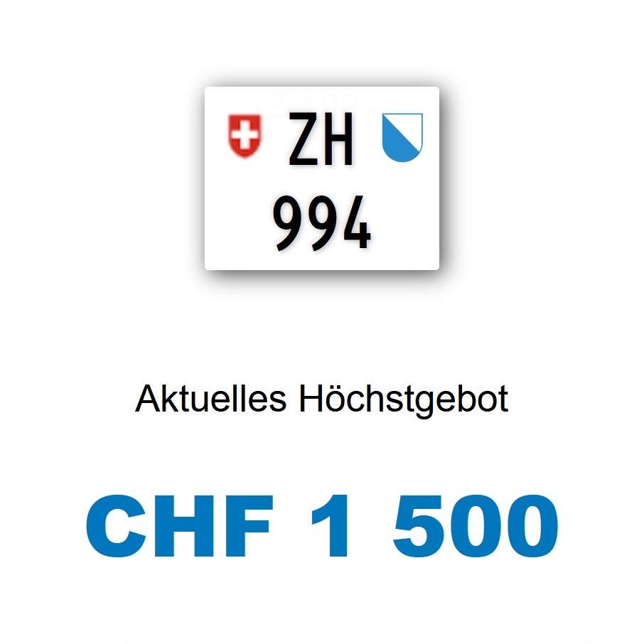 Am 11.02.2026 wurde im Kanton Zürich das nächste 3-stellige TÖFF-Nummernschild ausgegeben - in der Auktion ging es zum äusserst tiefen Preis von nur Fr. 1500.- weg! Verfolge den Verlauf vom «ZH 994